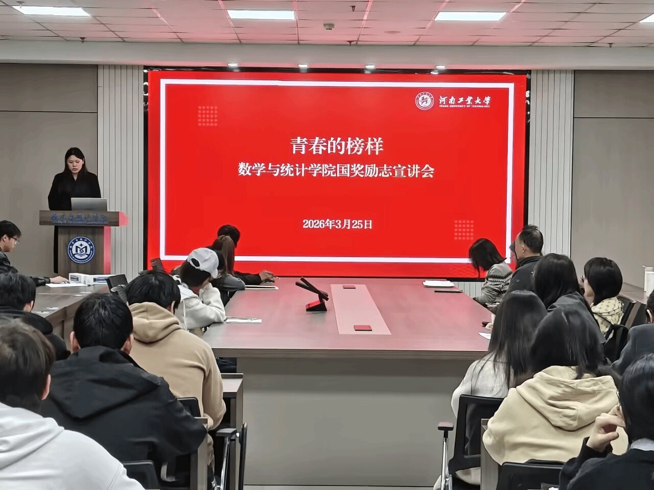 统计学教研室教师姜子望、全体辅导员以及获得奖助学金的学生代表参加此次宣讲会。会议由学工办主任赵洁主持。