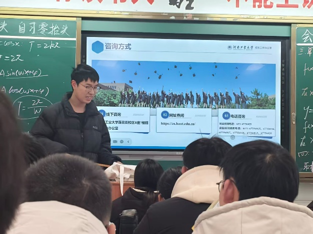 本次宣传活动以“情系观庙,筑梦工大”为主题,贴合观庙高中学生备考节奏与升学需求开展。活动前期,何思贤同学精心筹备宣传物料,整理学校招生简章、专业介绍等资料,制作包含办学实力、学科优势、录取分数线等核心内容的宣讲PPT,确保宣传信息准确、易懂。
