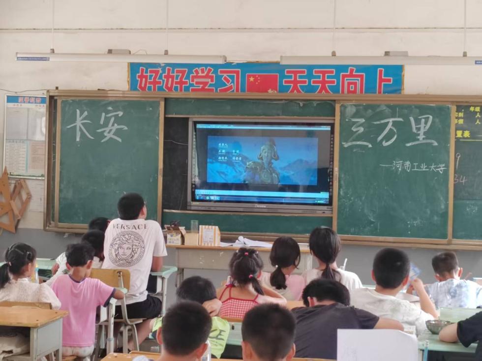 在晨光熹微中,支教团以国产动画电影《长安三万里》开启文化之旅。影片以高适视角串联李白、杜甫等诗人群像,将盛唐气象与诗词意境融入48首经典诗作。观影后,队员们设计“飞花令”诗词接龙游戏,孩子们争相吟诵“天生我材必有用”的豪迈、“轻舟已过万重山”的豁达。五年级学生王宝龙兴奋地说:“原来课本里的诗句,藏着这么多有趣的故事!”