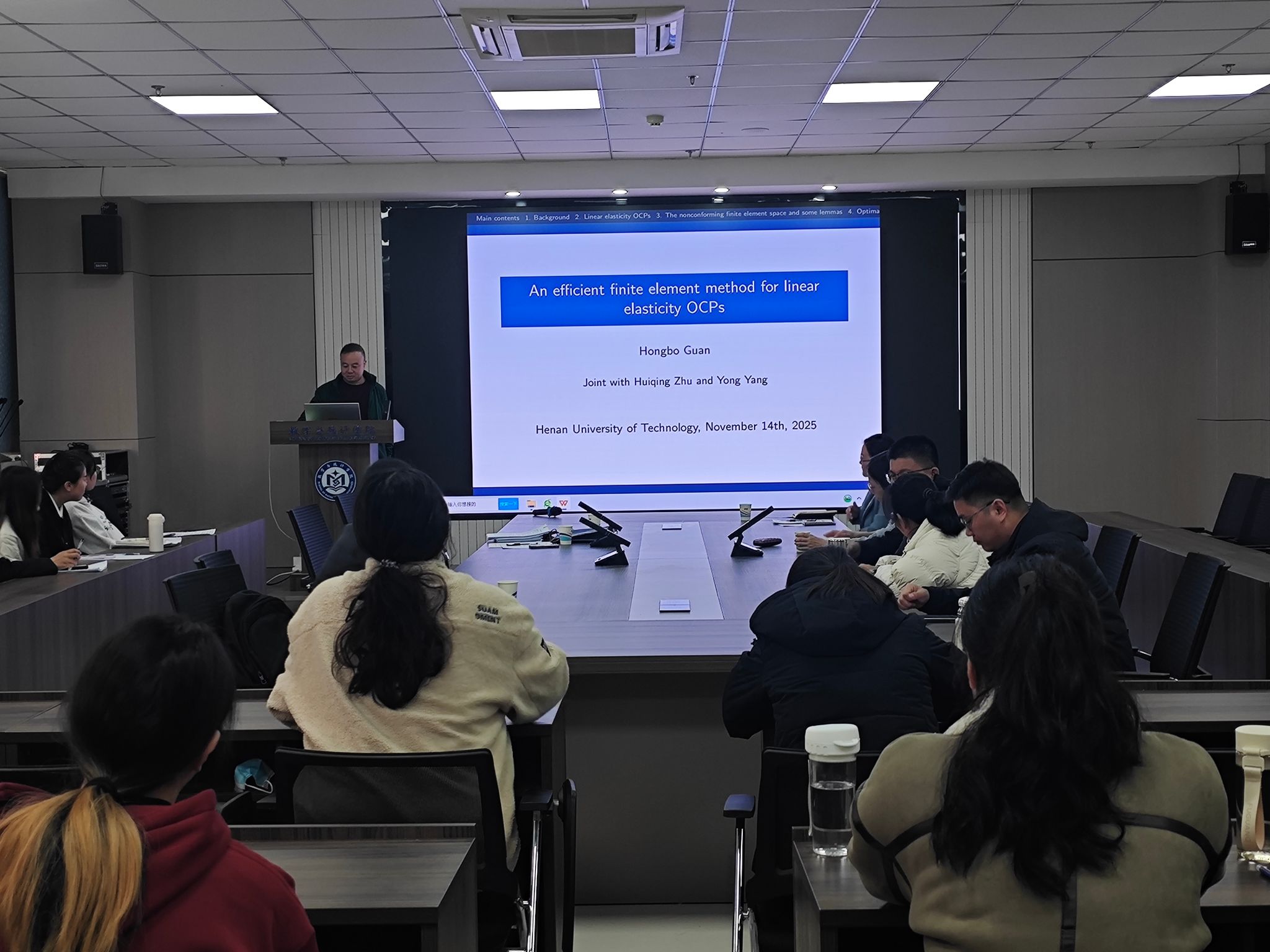 关宏波教授在莲花街校区惟德楼315会议室作了题为“An efficient finite element method for linear elasticity OCPs”的学术报告。91社区