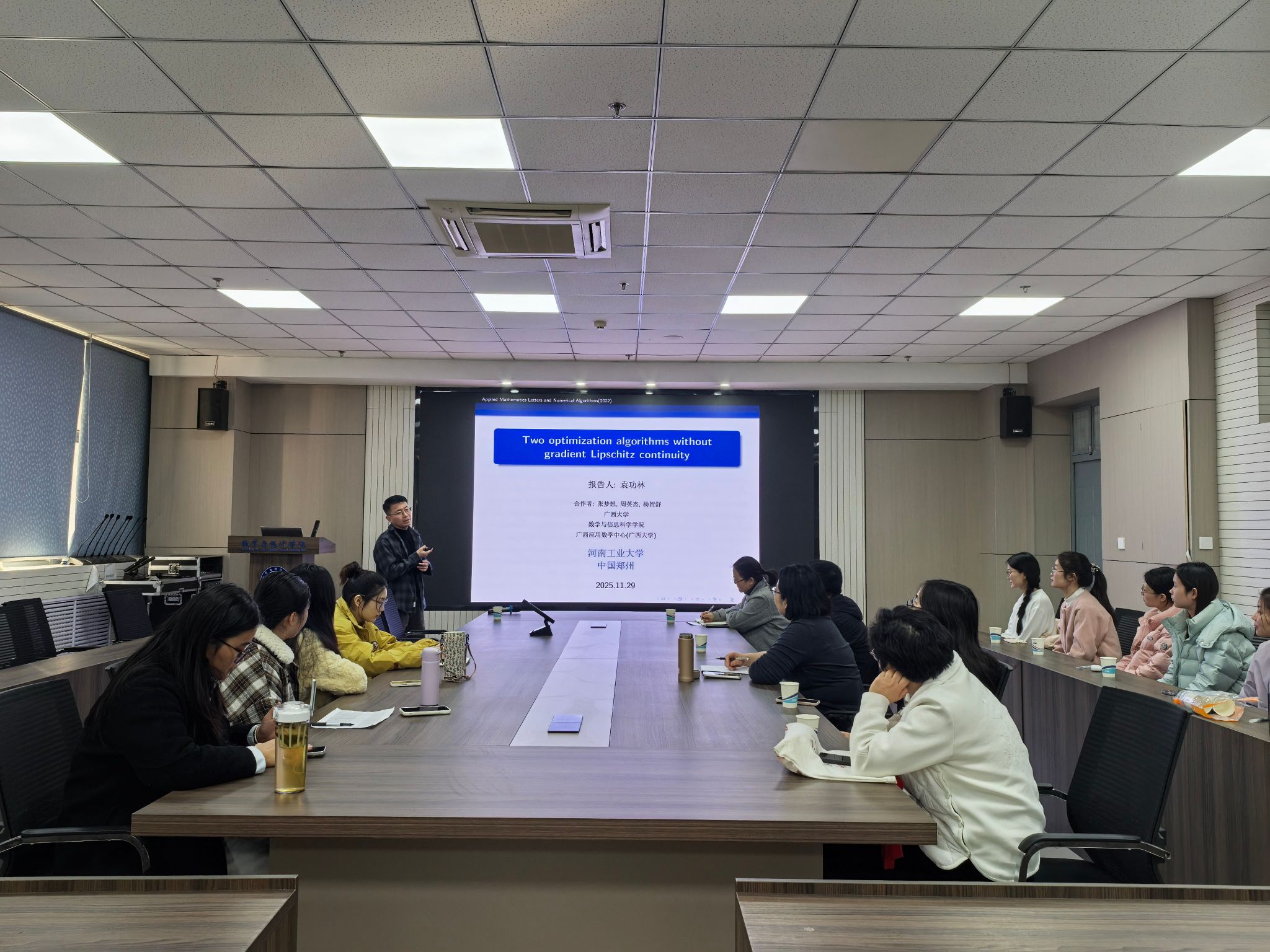 副院长、博士生导师、袁功林教授在惟德楼315会议室作了题为“Two optimization algorithms without gradient Lipschitz continuity”的学术报告。院长谷存昌、副院长曹建莉、91社区